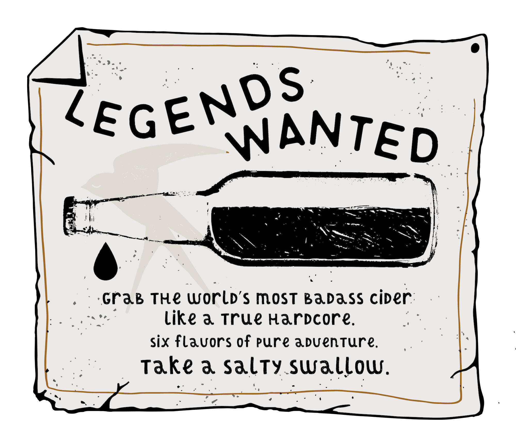 But it’s not just a bevo. A bottle of Salty Swallow cider is a lifestyle choice for those goal-driven individuals trying to make life less bland.